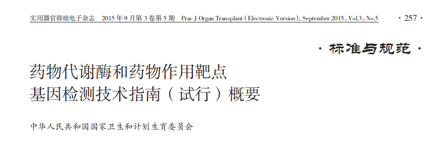 [1] 國家衛(wèi)健委.藥物代謝酶和藥物作用靶點基因檢測技術(shù)指南(試行).2015